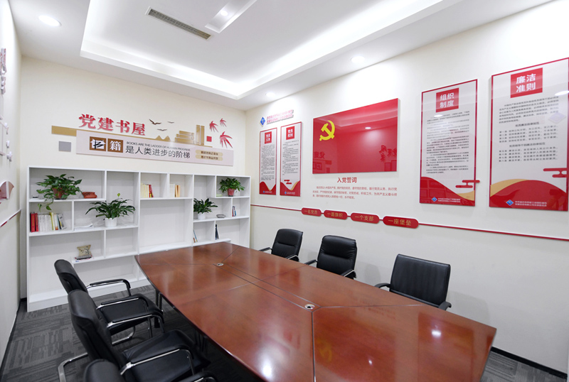 城發(fā)公司黨支部以“規(guī)范、節(jié)儉、實用”為目標,對原會議室進行了科學(xué)設(shè)計和規(guī)劃,滿足公司黨員職工學(xué)習、會議需要,并配置書架存放多種類黨建書籍、管理書籍以及日常學(xué)習活動資料,全方位為黨建工作開展活動創(chuàng)造條件和溫馨的環(huán)境,實現(xiàn)了“一室多用”的效果。