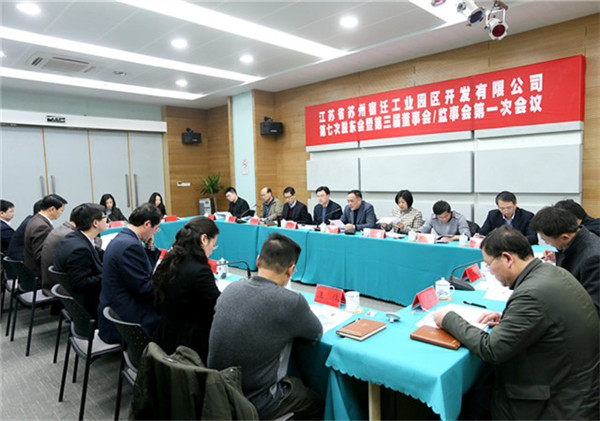 2014年3月5日下午,江蘇省蘇州宿遷工業(yè)園區(qū)開(kāi)發(fā)有限公司在蘇宿工業(yè)坊管理樓一樓會(huì)議室召開(kāi)第七次股東會(huì)暨第三屆董事會(huì)/監(jiān)事會(huì)第一次會(huì)議。公司全體股東代表、董事、監(jiān)事出席會(huì)議,部分離任股東代表、董事、監(jiān)事,園區(qū)工委班子、各局辦負(fù)責(zé)人,公司管理層及部門(mén)負(fù)責(zé)人列席會(huì)議。副市長(zhǎng)、蘇宿工業(yè)園區(qū)工委書(shū)記、管委會(huì)主任方文浜同志主持會(huì)議。