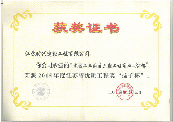 江蘇省“揚(yáng)子杯”優(yōu)質(zhì)工程獎(jiǎng)是我省建設(shè)工程質(zhì)量最高榮譽(yù)獎(jiǎng),為省人民政府確定的行政獎(jiǎng)勵(lì), 代表了我省當(dāng)前工程建設(shè)質(zhì)量的最高水平。揚(yáng)子杯每年評(píng)審一次,評(píng)選對(duì)象為我省境內(nèi)、已經(jīng)建成并投入使用的各類(lèi)建設(shè)工程。該獎(jiǎng)的設(shè)立旨在促進(jìn)建設(shè)和施工單位提高工程質(zhì)量水平、增強(qiáng)建筑精品意識(shí)。