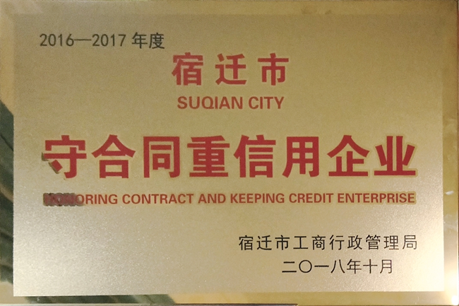 11月8日,宿遷市工商行政管理局召開2016—2017年度“守合同重信用”企業(yè)公示證書頒發(fā)暨宿遷市企業(yè)信用管理協(xié)會第四次會員代表大會,園區(qū)城發(fā)公司獲評宿遷市“守合同重信用” 企業(yè)榮譽(yù)稱號。