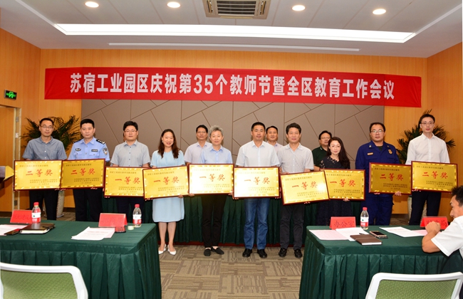9月10日下午,蘇宿工業(yè)園區(qū)召開慶祝第35個(gè)教師節(jié)暨全區(qū)教育工作會議,開發(fā)公司喜獲園區(qū)教育發(fā)展貢獻(xiàn)一等獎。