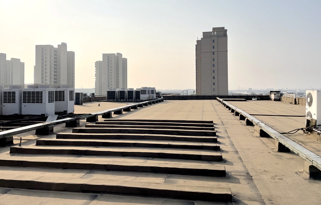 東吳尚城2013年建成投用至今8年,屋面防水老化嚴(yán)重,四樓部分屋面均出現(xiàn)不同程度漏雨現(xiàn)象,影響正常使用。城發(fā)公司前期會(huì)同專業(yè)防水單位,根據(jù)屋面實(shí)際情況,制定合理的專項(xiàng)維修方案。