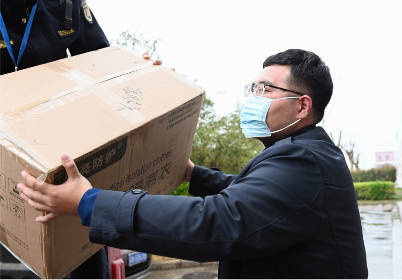 沒有大家哪有小家,疫情防控關(guān)系園區(qū)每一個人。3月11日夜里12點,園區(qū)招商與經(jīng)濟發(fā)展局綜合處科員王鑫看了眼熟睡中懷孕的妻子,便匆匆趕赴管委會,投入到核酸檢測物資調(diào)配工作。凌晨2點分發(fā)完最后一組防疫物資后,他又立刻趕赴聚成金剛石公司的夜班人員核酸檢測現(xiàn)場。兵馬未動、糧草先行,負(fù)責(zé)物資保障工作的他,深知打贏這場疫情防控攻堅戰(zhàn),離不開充足的物資準(zhǔn)備。3月12日以來,他所在的物資工作組共接收調(diào)撥核酸采樣管3.3萬支、防護(hù)服3000件、防護(hù)面罩12000件、外科口罩100萬個、隔離服11000件等。為了保障物資供應(yīng)分發(fā)精準(zhǔn)規(guī)范,他研究建立了“一表兩清單”物資發(fā)放流程,實現(xiàn)物資調(diào)撥、分發(fā)流程化、規(guī)范化,大大提升了分發(fā)效率,做到了分秒必爭。夜班檢測結(jié)束后,顧不上回家休息的他,早上6點又匆匆趕到皓峰電器公司白班人員采樣現(xiàn)場,投入到下一場緊張有序的核酸檢測工作當(dāng)中。