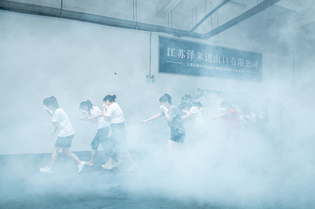 “全體工作人員請注意,服裝廠發(fā)生火情,請立即啟動火災(zāi)應(yīng)急預(yù)案,組織員工撤離!” 隨著警報的響起,應(yīng)急疏散演練指揮部總指揮下達了這樣的命令。