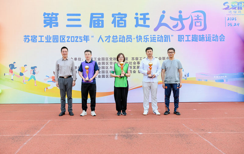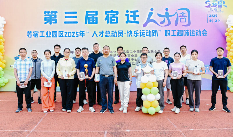 5月24日,在第三屆宿遷人才周期間,蘇宿工業(yè)園區(qū)在宿遷市蘇州外國語學(xué)校南校區(qū)舉行2025年“人才總動(dòng)員、快樂運(yùn)動(dòng)趴”職工趣味運(yùn)動(dòng)會(huì),城發(fā)公司積極組織20名員工代表國資國企隊(duì)與園區(qū)管委會(huì)機(jī)關(guān)、學(xué)校、社區(qū)等200余名職工一同參賽。在激烈角逐中團(tuán)結(jié)協(xié)作,國資國企隊(duì)最終斬獲團(tuán)體三等獎(jiǎng)的佳績。
