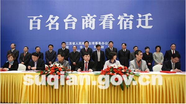 在宿遷投資環(huán)境推介會(huì)上還隆重舉行了項(xiàng)目簽約儀式。經(jīng)過前期深入溝通和洽談,此次“百名臺(tái)商看宿遷”活動(dòng)取得了一批可喜的項(xiàng)目合作成果,宿豫區(qū)、宿城區(qū)、宿遷經(jīng)濟(jì)開發(fā)區(qū)和市有關(guān)部門與臺(tái)灣島內(nèi)企業(yè)共達(dá)成13個(gè)項(xiàng)目投資意向,協(xié)議總投資達(dá)114.4億元,涉及新能源、新材料、軟件服務(wù)外包、機(jī)械制造、環(huán)??萍?、電子、食品等多個(gè)領(lǐng)域。