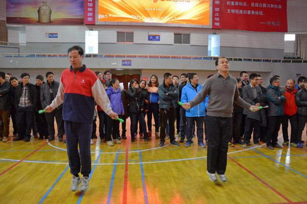 運動會在熱情奔放的開場秀和舞蹈《小蘋果》中拉開序幕。隨后,精彩的團隊、個人比賽依序開始。比賽共有乒乓球接力、心心相印、三人四足、穿衣接力、拋繡球、雙腿夾球接力、拔河等7項團體項目,和摸石頭過河、趕小豬、原地轉(zhuǎn)圈后射門、一分鐘計時跳繩等4項個人項目,每個比賽項目都既鍛煉了大家的運動協(xié)調(diào)能力,又鍛煉了大家在工作中的團結(jié)協(xié)作精神,既是體力和智慧的角逐,又是團結(jié)合作的完美比拼。