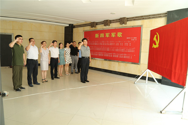在黃花塘新四軍紀(jì)念館,全體黨員干部觀看了實(shí)物展覽和文字圖片介紹,直觀地感受和體會(huì)了新四軍革命先烈在硝煙彌漫的年代,用鮮血和生命爭(zhēng)取人民解放的偉大奉獻(xiàn)精神,學(xué)習(xí)了陳毅、粟裕等老一輩無產(chǎn)階級(jí)革命家敢為人先、顧全大局、不畏犧牲、艱苦奮斗的優(yōu)良傳統(tǒng)。在紀(jì)念館大廳,全體黨員面對(duì)鮮紅的黨旗,莊嚴(yán)地舉起右拳齊聲宣誓,重溫了入黨誓詞。