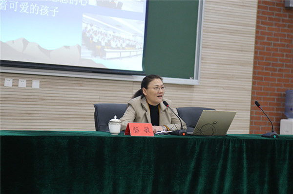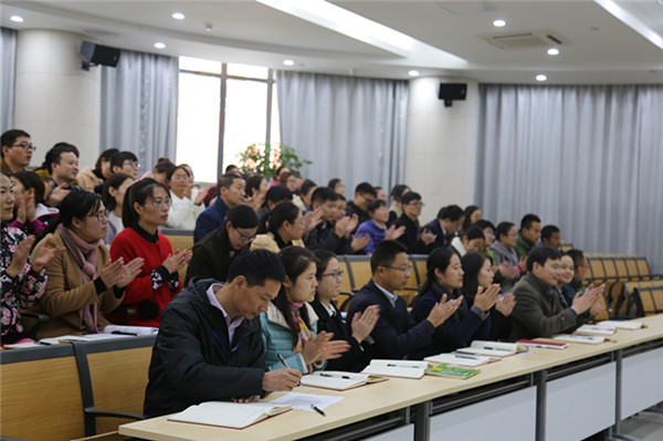 駱敏從“做教師的意義、如何成為學(xué)生心目中的好老師和如何成為大家心中的好老師”三個(gè)方面給老師們上了一堂別開生面的專業(yè)發(fā)展課。駱敏指出,教師應(yīng)該具有高尚奉獻(xiàn)、完善自我的意識,特別要從細(xì)節(jié)方面、從學(xué)生的角度思考,開啟通向優(yōu)秀教師的通道。駱敏認(rèn)為學(xué)生心目中的好老師應(yīng)該是一名演說家、幽默大師,具有獨(dú)特的教學(xué)藝術(shù),對孩子能夠真誠贊美、懂得尊重學(xué)生、真心關(guān)愛學(xué)生。作為好老師,應(yīng)該修德、修志、修學(xué)、修能、修性,有欣賞的眼光,感恩的心態(tài)。
