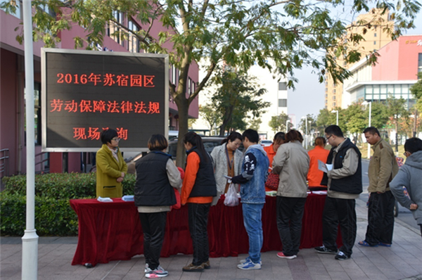 為進(jìn)一步優(yōu)化園區(qū)用工環(huán)境,引導(dǎo)職工理性維權(quán),11月11日上午,園區(qū)勞動(dòng)部門選擇了在企業(yè)員工集聚區(qū)——園區(qū)公舍開展勞動(dòng)保障法律法規(guī)現(xiàn)場咨詢活動(dòng),通過發(fā)放宣傳資料,面對面答疑解惑等方式普及勞動(dòng)保障相關(guān)知識。